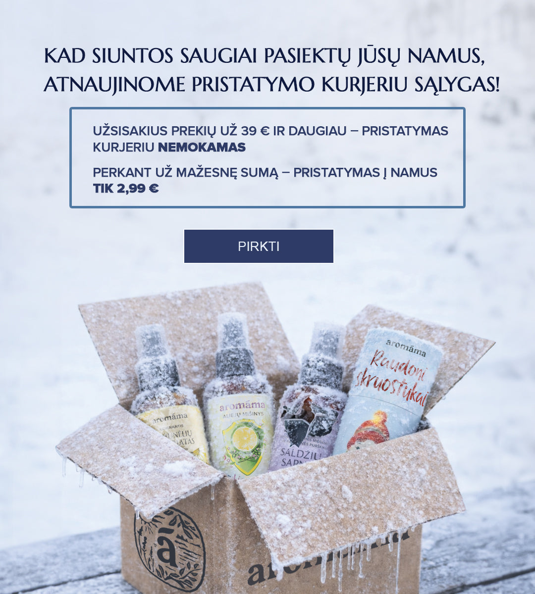 - Perkant už 79 € ir daugiau Jūsų siuntą nemokamai pristatysime per kurjerių tarnybą.