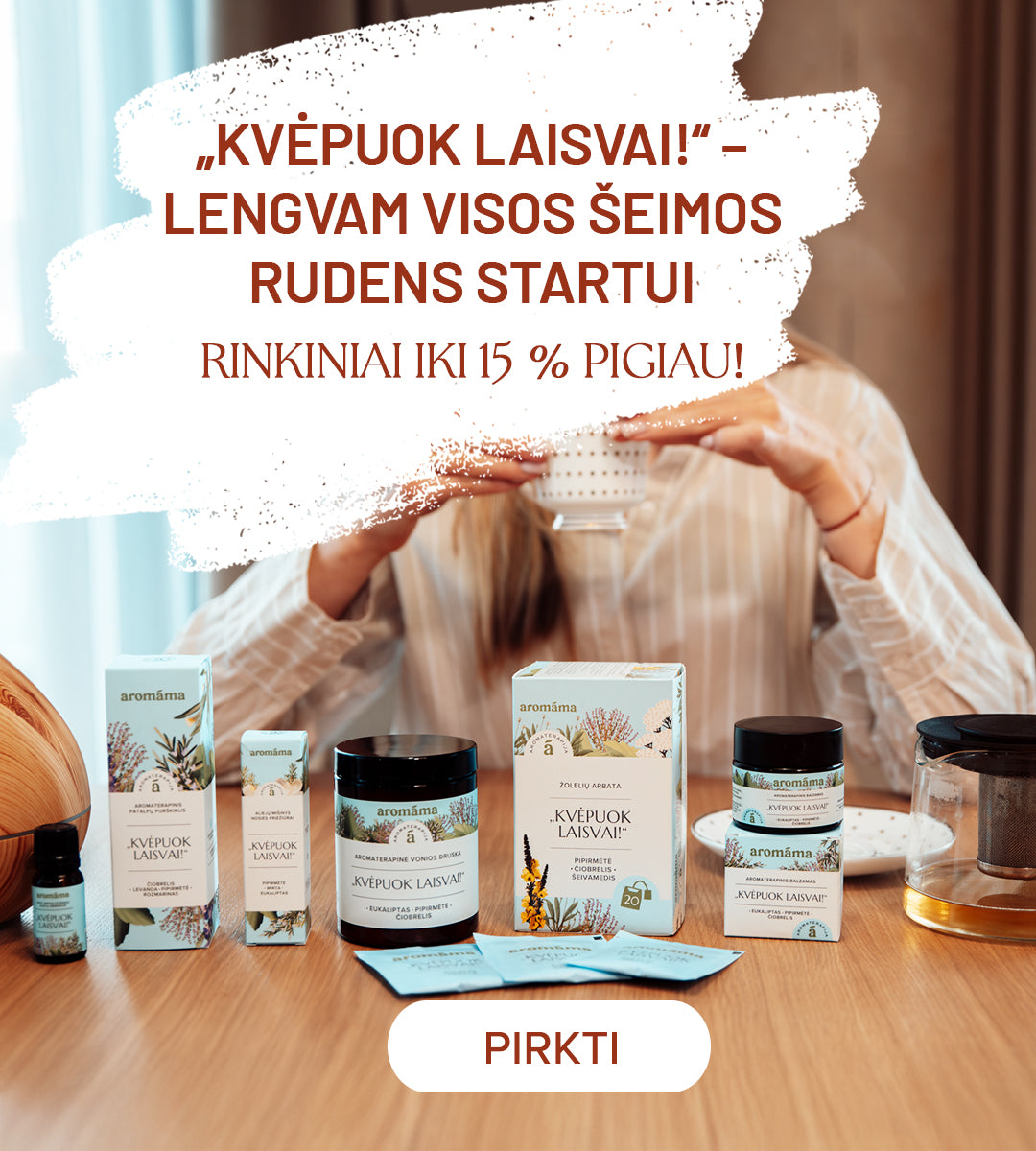 Tiekėjas:Aliejų mišinio ir aromaterapinio balzamo rinkinys „Kvėpuok laisvai“aromáma- Reguliari kaina