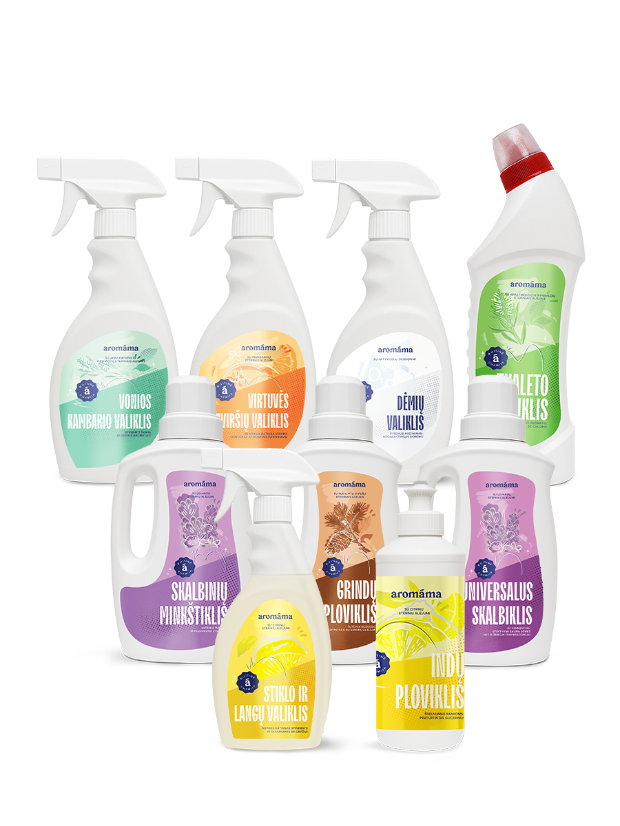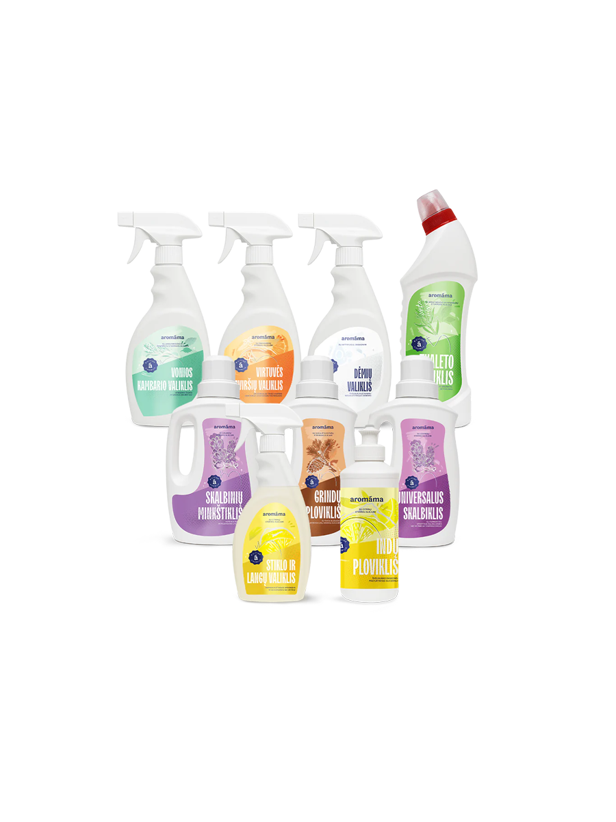 Net devynios priemonės, sukurtos kasdieniam naudojimui, užtikrina ne tik efektyvų valymą, bet ir pripildo erdves gaiviais eterinių aliejų aromatais. Nuo skalbinių iki stiklų – švaru, švelnu, kvapnu.