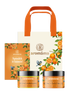 - Kūno šveitiklis (200 ml) – tirštos uogienės konsistencijos šveitiklis su natūraliomis, iš apelsinų žievelių pagamintomis šveičiamosiomis dalelėmis. Nuotaikingą oranžinę spalvą gaminiui suteikia omega rūgštimis, vitaminais ir beta karotenu turtingas šaltalankių aliejus, o kibirkščiuojantį aromatą – ekologiškas apelsinų eterinis aliejus. Cukraus pagrindo šveitiklis švelniai, bet efektyviai eksfoliuoja odą, o saldžiųjų migdolų aliejus suteikia aksominio švelnumo ir komforto pojūtį.