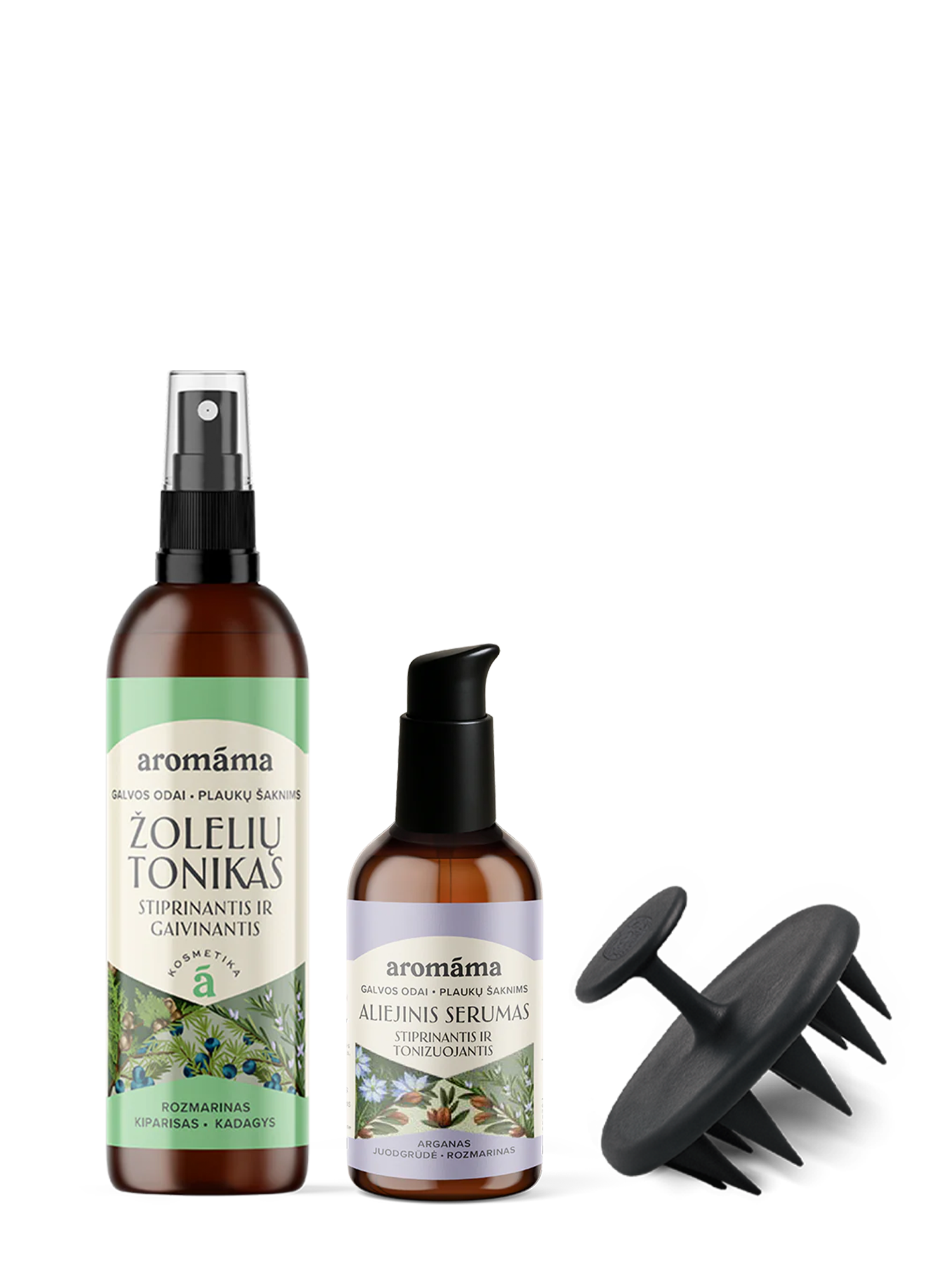 Kruopščiai suderintos formulės – žolelių tonikas ir aliejinis serumas – veikia sinergiškai: maitina, ramina, stiprina ir skatina naujų plaukų augimą. Dovana – masažuoklis – padeda dar giliau įsisavinti veikliąsias medžiagas, skatina kraujotaką ir paverčia procedūrą maloniu kasdieniu ritualu.